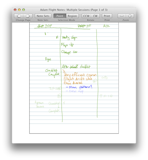 Keep in mind that templates and notes can be re-printed with different pattern. If you have access to both types of pens, you can take advantage of the entire system by printing Livescribe-patterned templates to use in the field, loading those notes into ChronoViz when you get back to your computer, then re-printing those notes on Anoto streaming pattern for interactive use with a Bluetooth pen.